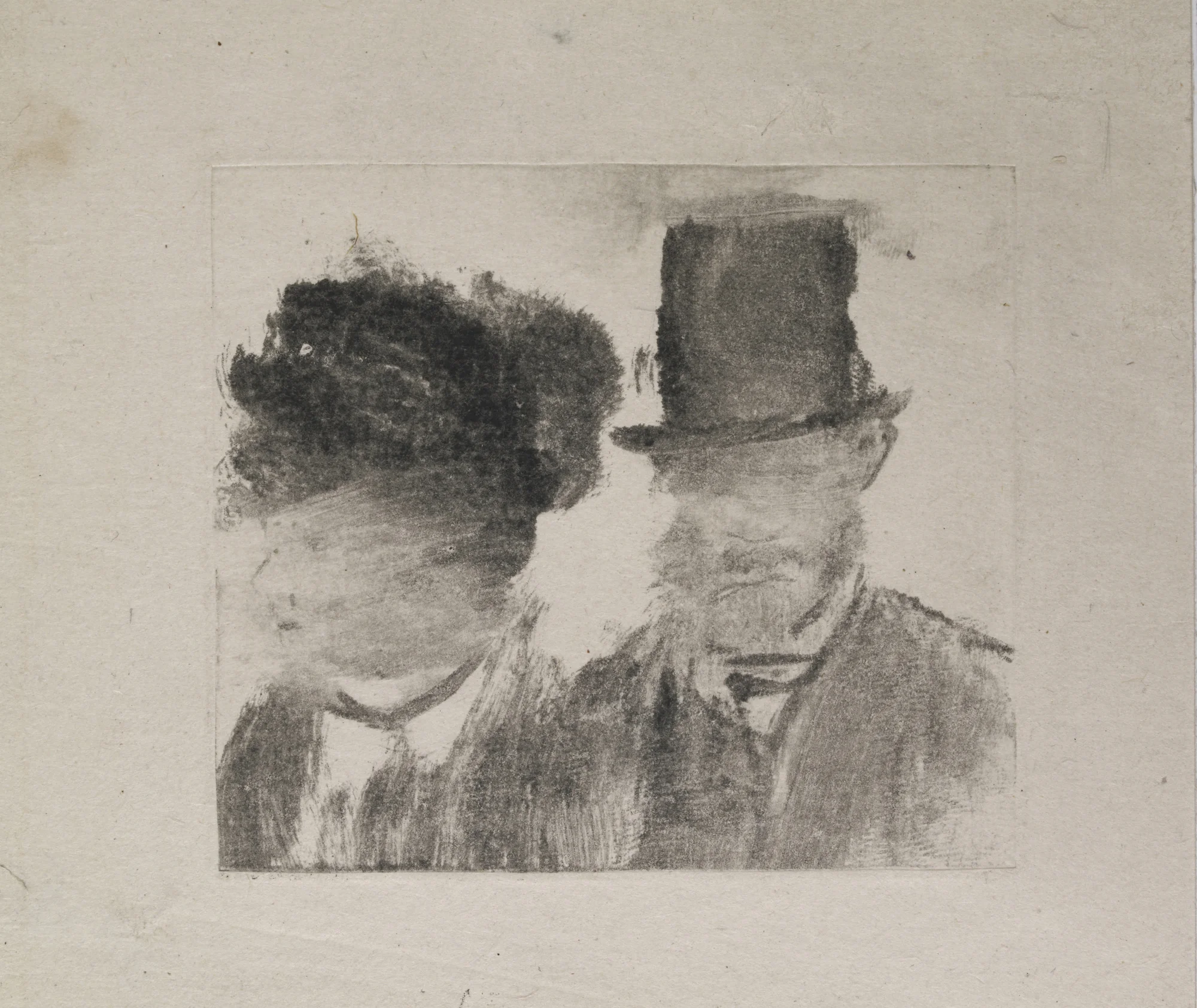 Edgar Degas. Heads of a Man and a Woman (Homme et femme, en buste). c. 1877–80. Monotype on paper, plate: 2 13/16 x 3 3/16” (7.2 x 8.1 cm) . British Museum, London.